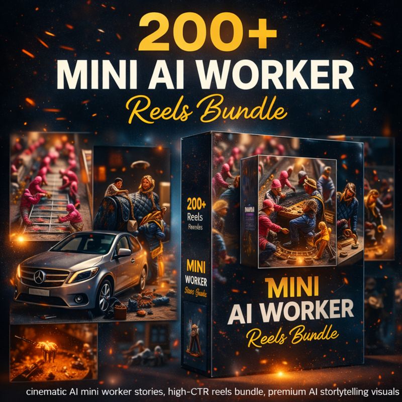 This bundle provides over 200 cinematic AI-generated reels featuring miniature worker storytelling scenes. The creative visual concept attracts viewer curiosity and encourages longer watch-time, making it ideal for short-form content creators seeking engaging and scroll-stopping videos.