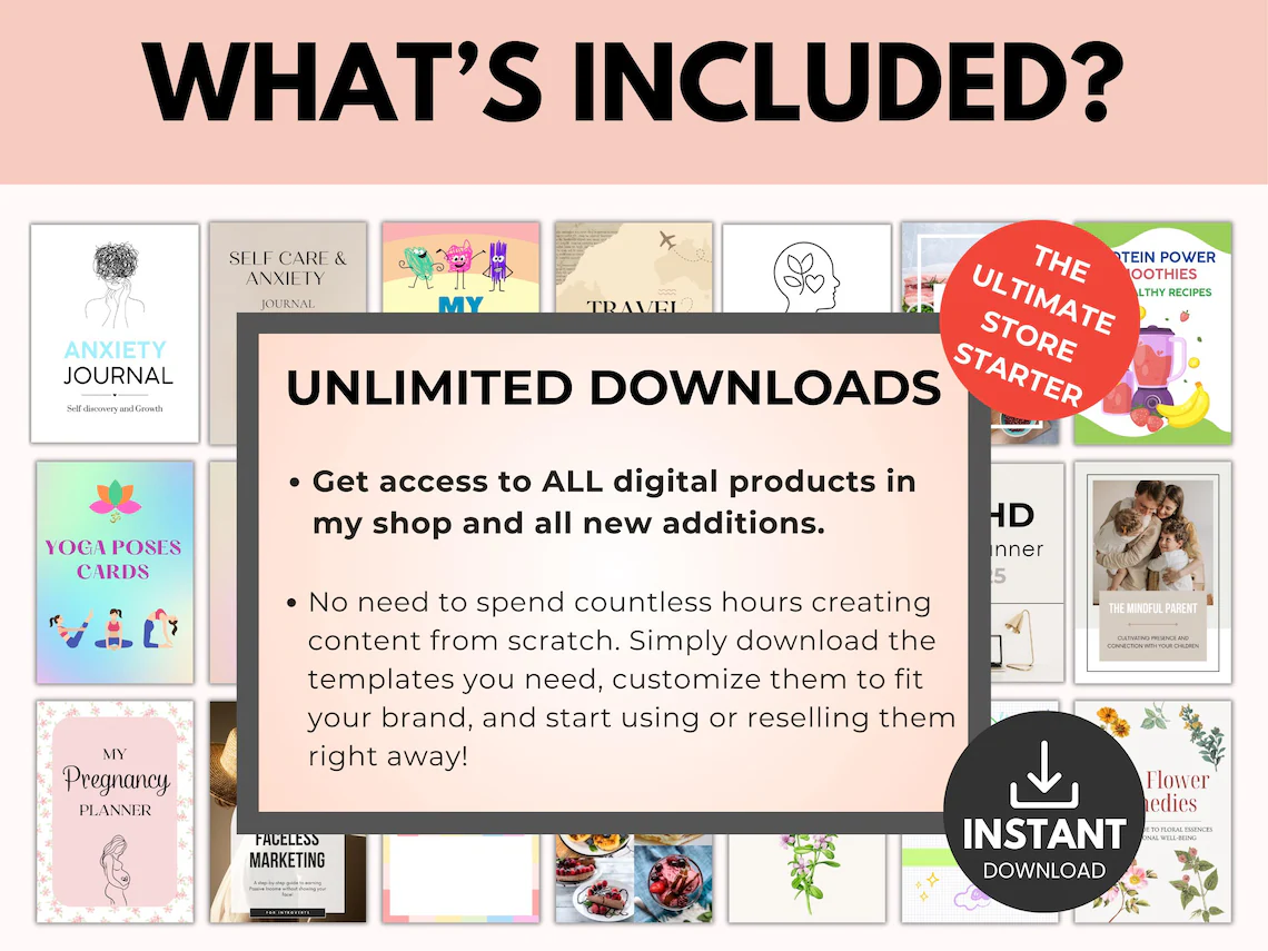 👉Start building your digital product business today. Download the template bundle instantly, customize it with your branding, and begin selling professional digital products online within minutes.